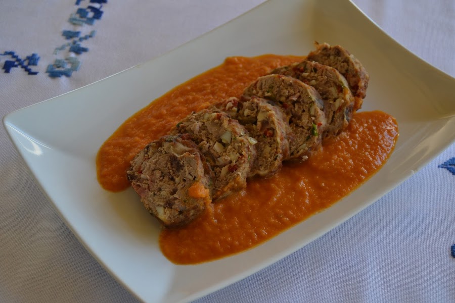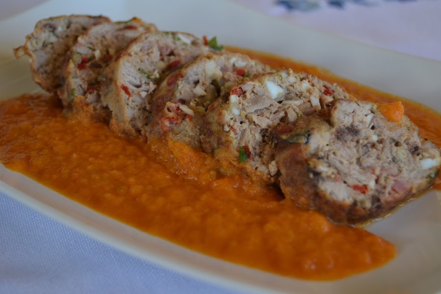Una vez fríos cortamos a rodajas y lo metemos en la salsa de tomate.