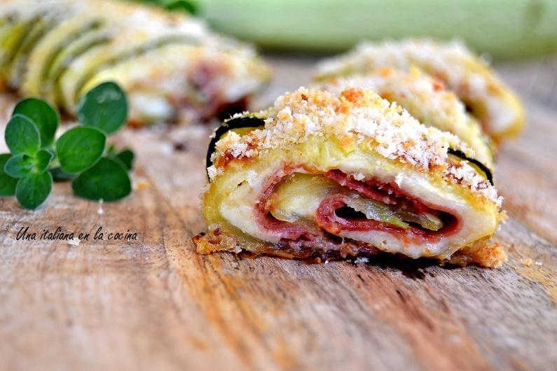 Posiblemente esta no sea una receta italiana tradicional, pero este rollo de calabacín relleno de jamón y queso es seguro la forma perfecta para gastar algún calabacín que se haya quedado olvidado en el frigorífico.Esta receta es muy fácil, la puedes personalizar a tu gusto y simplemente cambiando el tipo de queso del relleno obtendrás cada vez un resultado muy diferente. A mi me encanta con el toque que da la scamorza ahumada, con ella el rollo de calabacín queda aún más sabroso.