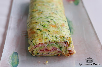 Lo enrollamos, esto hay que hacerlo en caliente para que no se rompa. Una vez que tenemos nuestro rollo lo envolvemos en papel vegetal para que no se seque y lo metemos en el horno unos 5 minutos para que el jamón se caliente y el queso se funda.