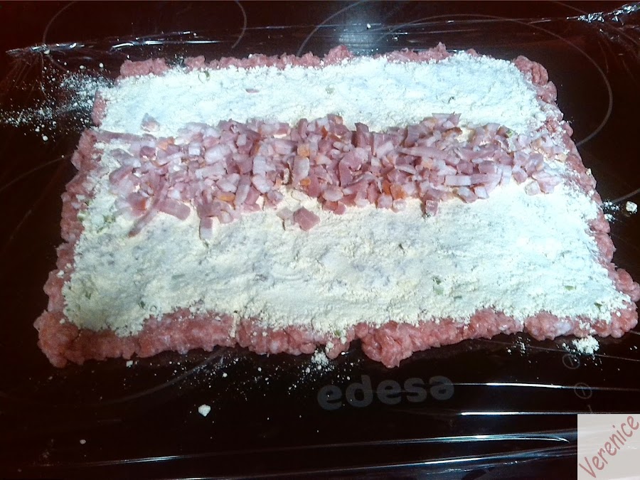 Sobre este extendemos la carne picada hasta dejarla de 1 cm de grosor