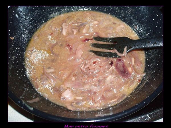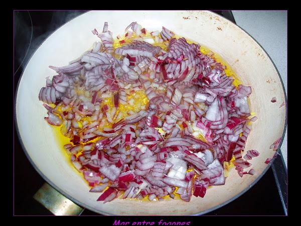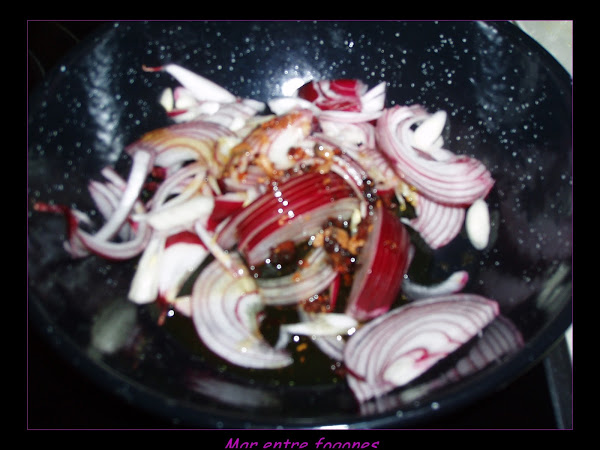 Después de 5 minutos mas o menos añadimos un chorrito de vino.