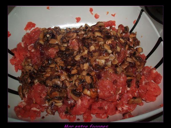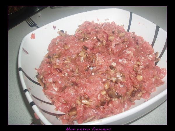 Aderezamos la carne picada como nos guste a nosotros, yo use sal, ajo molido y provenzales.