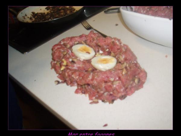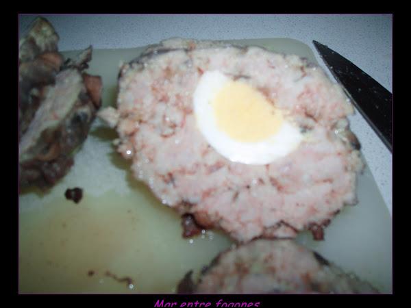 Hacemos dos agujeros y metemos la mitad del huevo en cada uno.