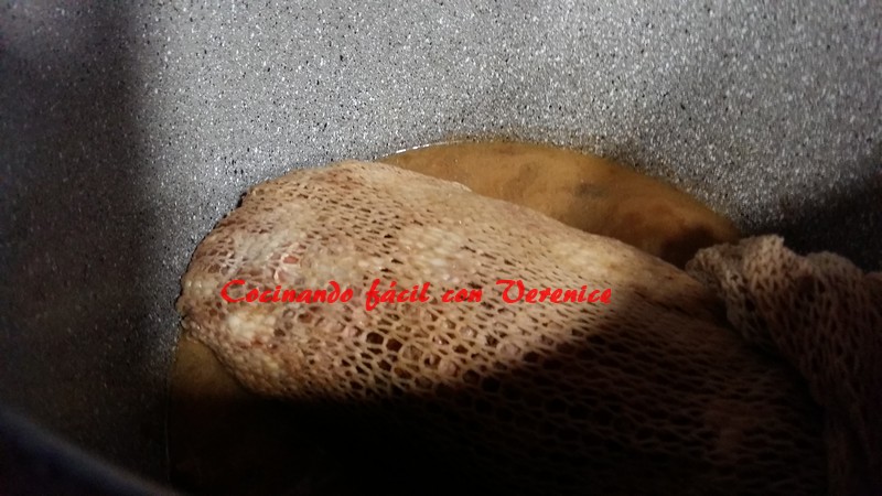 Como veréis en las fotos, tuve para dos rollos de carne, así que una vez terminado de envolver el primero esperé a acabarlo todo para empezar con el segundo, ya que no cabían en la olla con la red de las verduras.