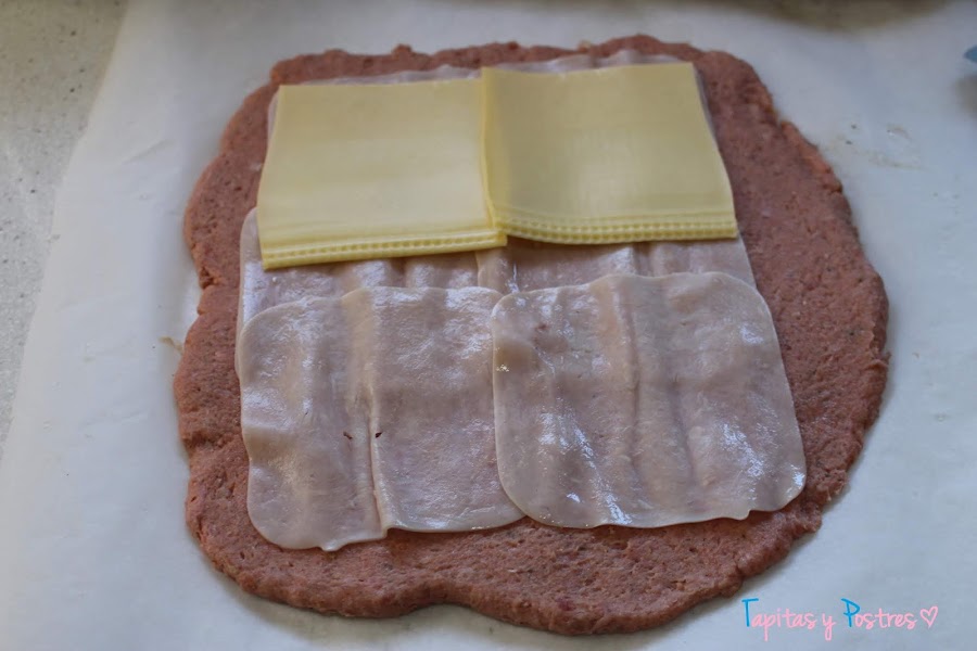 Ponemos lonchas de pechuga de pavo y queso encima.