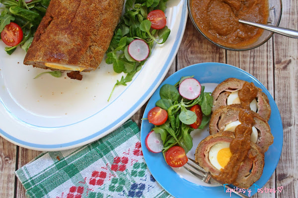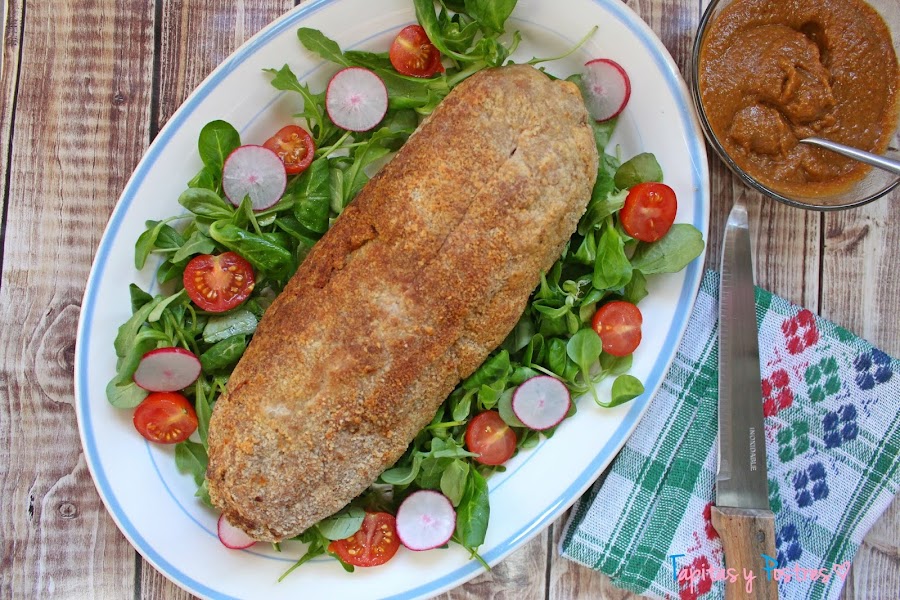 La idea es hacer un aliño al gusto vuestro. Yo os voy a enseñar como lo hice yo, pero podemos cambiar las especias, o el relleno. Y os recomiendo que la acompañeis con esta salsa de ciruelas y tomates secos.