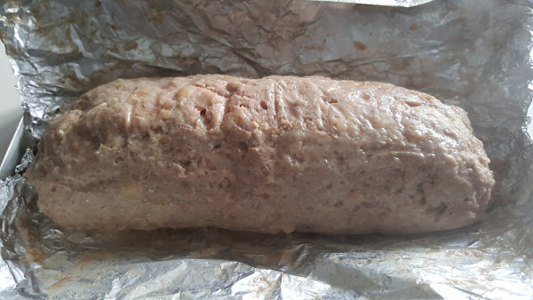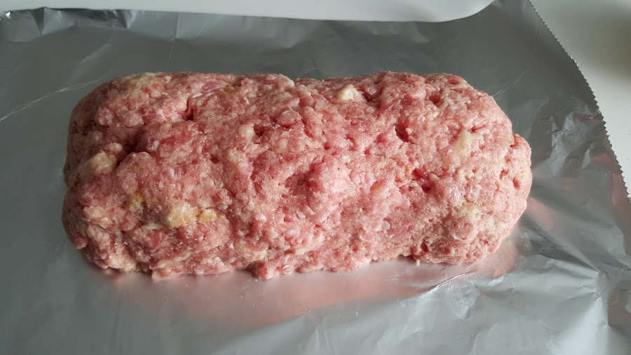 3. - Ponemos la carne en forma de rollo sobre papel dealuminio.