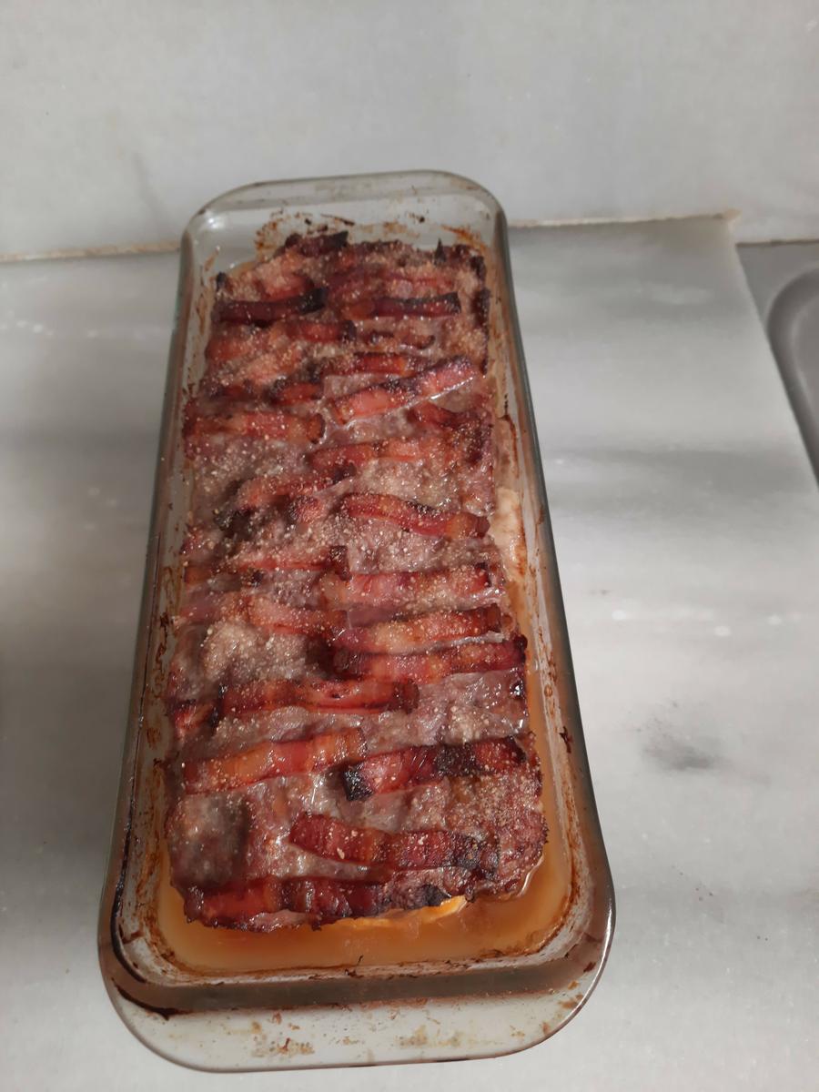 Rellenamos con la carne picada en medio he pimientos del piquillo a tiras, huevo duro y pimiento verde, terminar con mas carne picada.