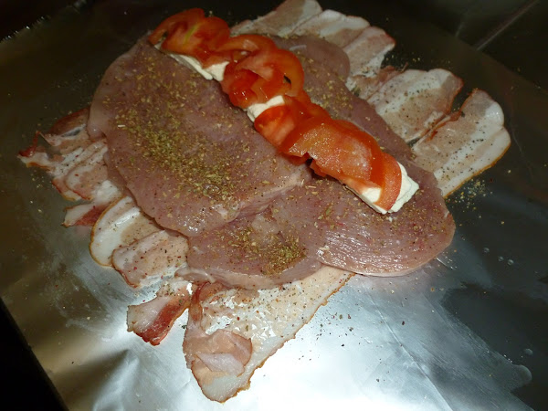 A continuación, abrir los paquetes de papel de aluminio, escurrir el líquido y volver a meter en el horno para que se dore el bacon.
