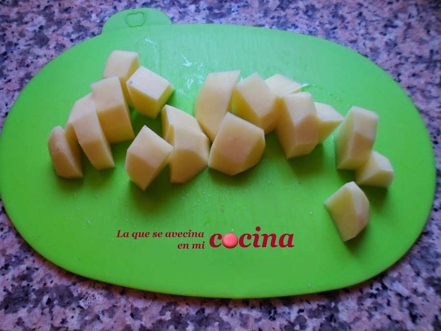 Pelamos y cortamos las patatas en trozos similares.