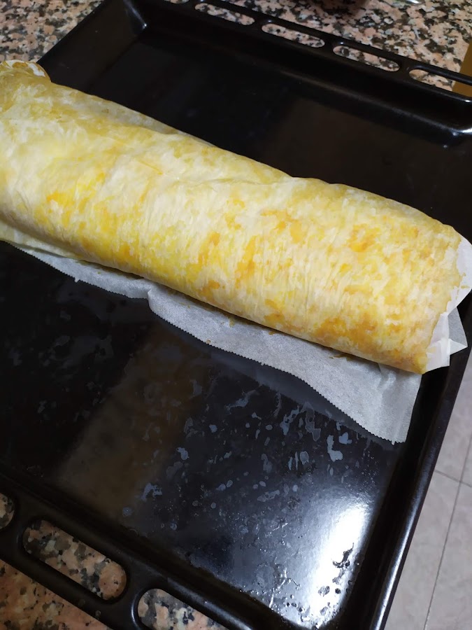 Envuelve sobre sí mismo, como cuando hacemos un brazo de gitano.