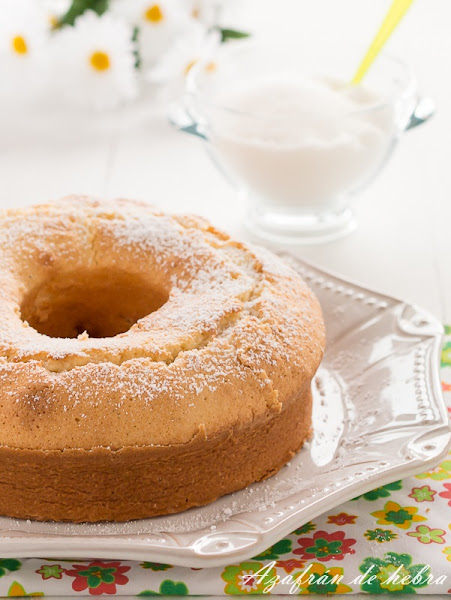 *Esta receta es muy similar al bizcocho de yogur tan archiconocido, varía en que no lleva levadura, sube sólo con las claras, mezcla dos tipos de harina y se añade vainilla. El resultado es una textura más suave.
