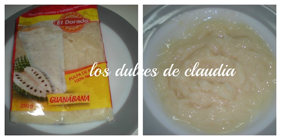 Como la guanábana es familia de la chirimoya, pensé que no quedaría mal, es un poco más ácida, por eso le añadí leche condensada. La guanábana la encontré en la sección internacional-congelados del Carrefour.