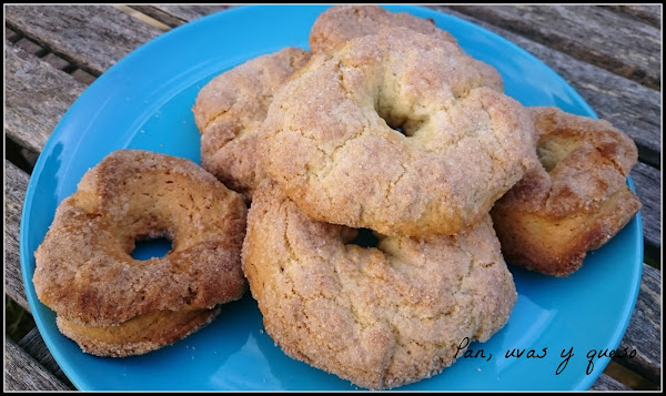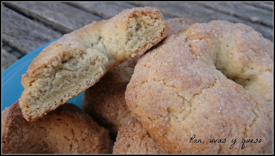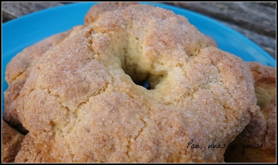 Hacemos los rollos y los pasamos por azúcar. Los colocamos en la bandeja del horno cubierta con papel de horno.