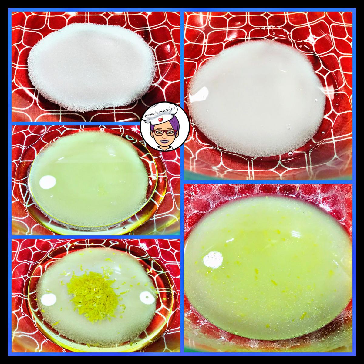 En un cuenco ponemos el azúcar el anís y el aceite, añadimos la ralladura del limón y batimos hasta que esté todo integrado