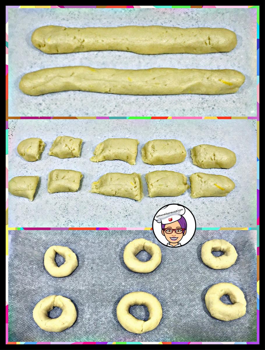 Con la mano vamos rulando la masa hasta que hayamos formado una tira y unimos las dos puntas, colocamos en una bandeja a la que previamente habremos puesto papel de horno.
