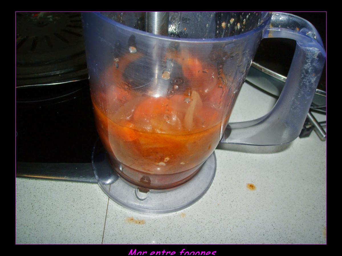 Trituramos la verdura, partimos los rollos en lonchas y servimos.