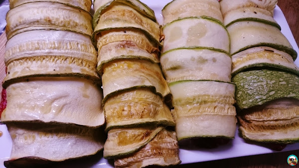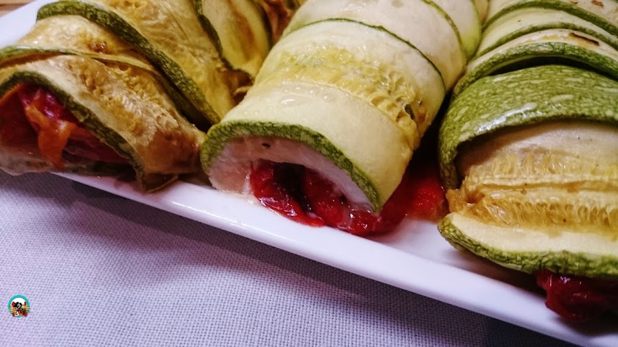 Rollos de calabacín rellenos, elaboración: