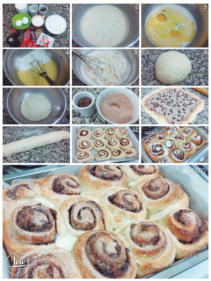 Arrancando el año nuevo les comparto unos exquisitos rollos de canela y chocolate. Este condimento tiene un sabor que me encanta y su aroma me despierta los mejores recuerdos de masas recién horneadas como los "bollos" que hacía mi abuela materna.