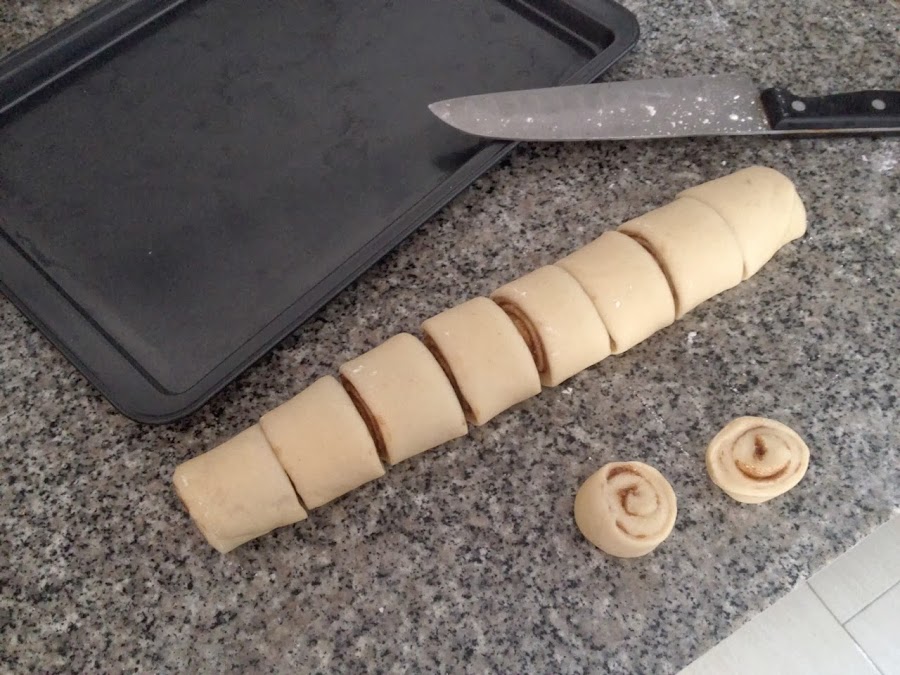 10. Cortar rollos del tamaño deseado y poner sobre un molde enmantequillado dejando poca distancia entre uno y otro.
