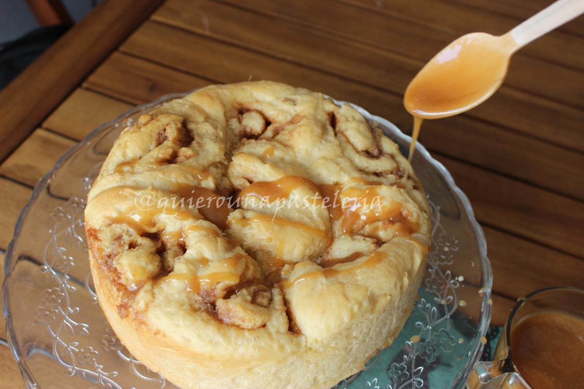 En un cazo ponemos la mantequilla, azúcar glass, leche y azúcar moreno hasta que se derrita por completo… con ayuda de una cuchara bañaremos nuestros rollitos de canela.