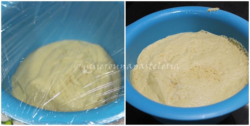 Dejaremos la masa en un bol tapado con film transparente durante 1 hora o hasta que haya doblado su volumen.