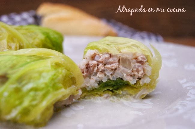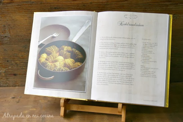 La cocina alemana pasa inadvertida fuera de sus fronteras. Alemania no es un país que necesite vivir de su turismo, por lo que su gastronomía, fuera del entorno de países que lo rodean, no es conocido. Por experiencia se que los alemanes no comen sólo salchichas. La col forma parte de su gastronomía más tradicional, al famoso chucrut, se unen estos rollos de col rellenos. He tenido la suerte de comer en Frankfurt los dos platos. En mi primer viaje a Alemania una amiga me comentó que no podía dejar de probar el chucrut, y yo entusiasmada lo pedí en una taberna típica para cenar. Ricardo, el tío de mi marido, me miró con cara rara, no lo entendí muy bien hasta que me pusieron el plato. El chucrut venía acompañado de un plato de carne cocida y embutidos, algo así como la pringá que tomamos con el cocido en España. Nada más lejos de lo que podía apetecer en aquellos momentos....por poco me levanto y me voy....Sólo probé un poco, por educación. El camarero cuando llegó a retirar los platos, miró a Ricardo, y con un aire bastante serio le dijo algunas palabras en alemán...él me miró y se rió: dice el camarero que otra vez que vuelvas vengas con hambre, je,je...Después de aquella experiencia, cada vez que he ido a Frankfurt he pedido sólo patatas con salchichas. Aunque en casa de nuestros tíos sí que hemos podido comer platos de la cocina más tradicional, y éstos rollos de col he tenido ocasión de probarlos y me gustaron mucho. No recuerdo exactamente qué llevaban aquellos rollos, pero en uno de los libros que me traje sí que viene la receta. Ha tocado de nuevo usar el traductor para traducir la receta y ponerla en práctica. Nos han gustado muchísimo estos rollos, y pienso repetirlo con más frecuencia. Espero que a vosotros también os guste.