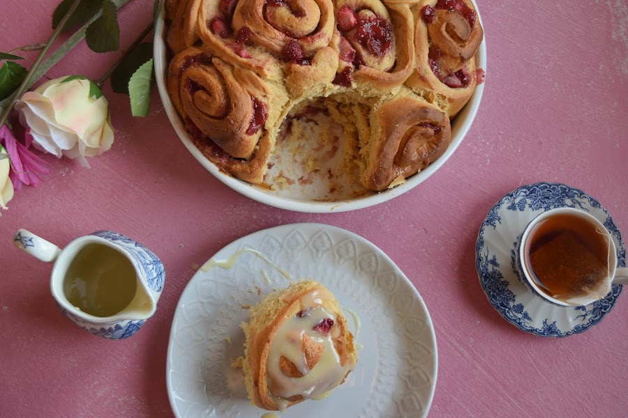 Parece un poco contradictorio porque cuando llega el fin de semana sigo horneando y no cosas sencillas que no llevan tiempo sino que a veces me da por hacer recetas como estos rollos de fresa que aunque son bastante fáciles de preparar llevan su tiempo.