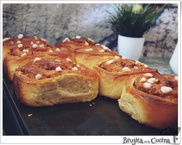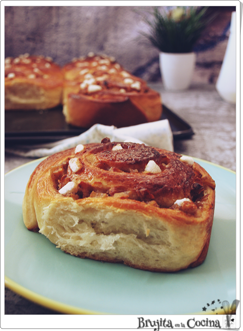 Pero todo cambió cuando Montes me dio un truco y entonces se abrió un mundo nuevo para mí, la semana pasada mi querida y generadora de necesidades Montes, estuvo en modo Brioche a tope, por lo que otras vez tuve que ponerme al lío, y la primera receta es esta que hoy traigo hoy, como no podía ser de otra forma y para hacerle honor tenia que llevar manzana y canela, como su blog.