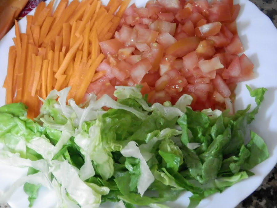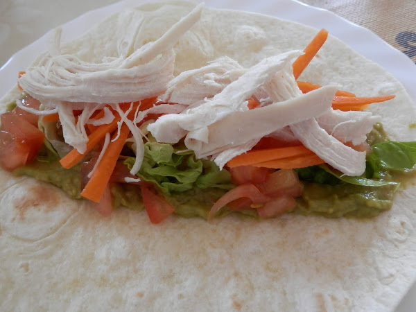 Pon encima las verduras y encima de todo unas tiras de pechuga.