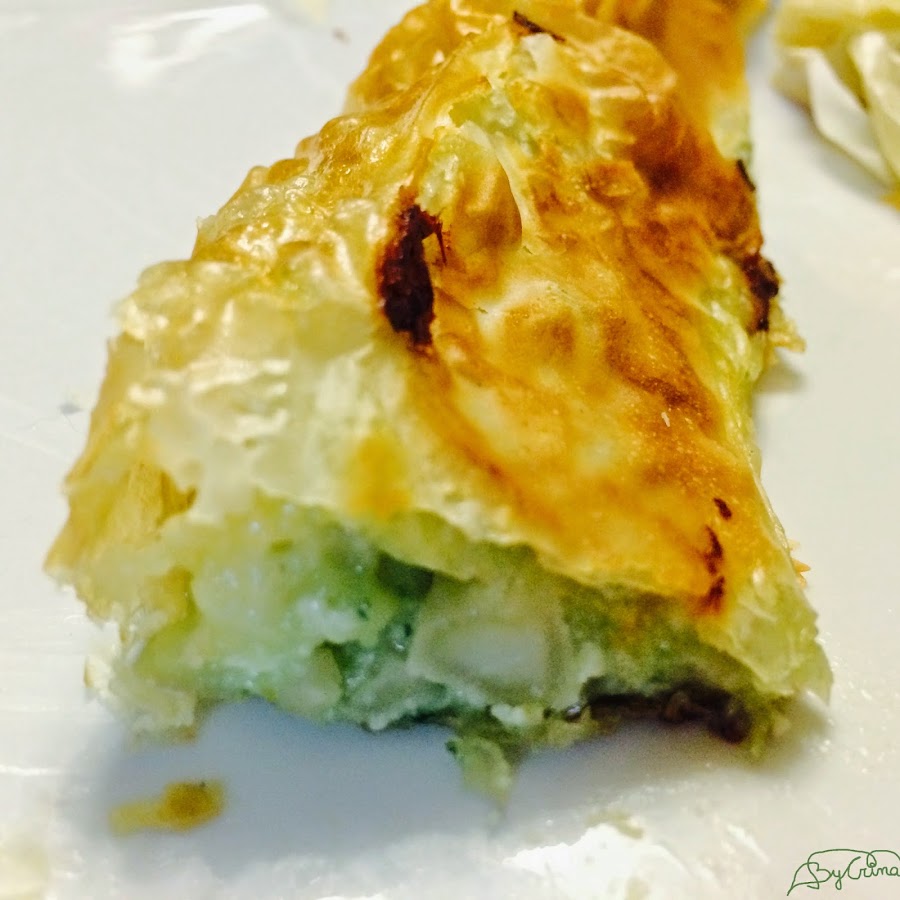 Put into a food processor the block of Camembert cheese, few almonds and some chives, mix everything between 2 or 3 minutes. When it"s ready, spread the phyllo pastry and place the filling, roll them up and seal with oil.