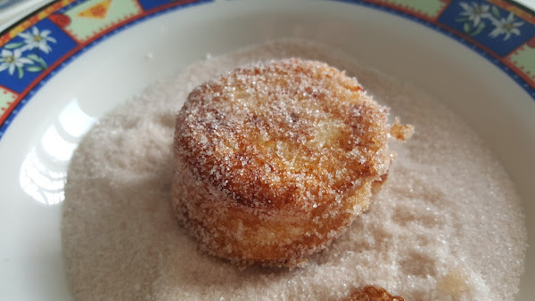 15. - Sacamos dejamos sobre papel absorbente, y todavía calientes, los pasamos por la mezcla de azúcar y canela.