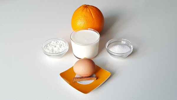 1. - Comenzaremos haciendo la crema para el relleno, poniendo a hervir en un cazo 150 ml de leche junto con el azúcar, la rama de canela y la ralladura de naranja. Que apartaremos, tapamos y dejamos reposar un par de minutos, para "infusionar" la canela.