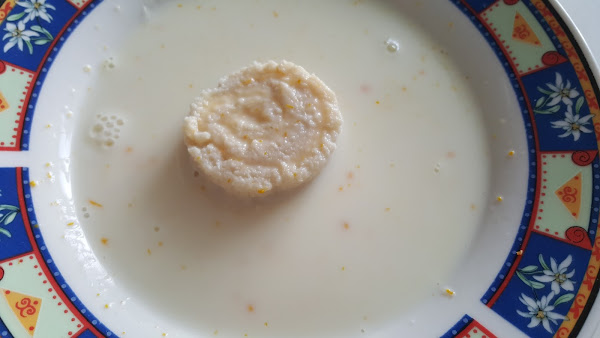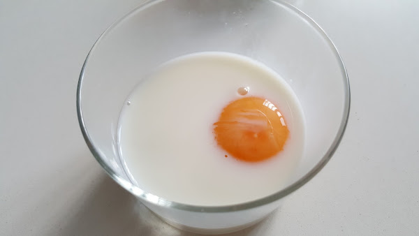 2. - Mientras se calienta, en un vaso con la leche restante (50 ml), añadimos la yema de huevo y removemos, y le añadimos la maicena hasta que quede bien disuelta.
