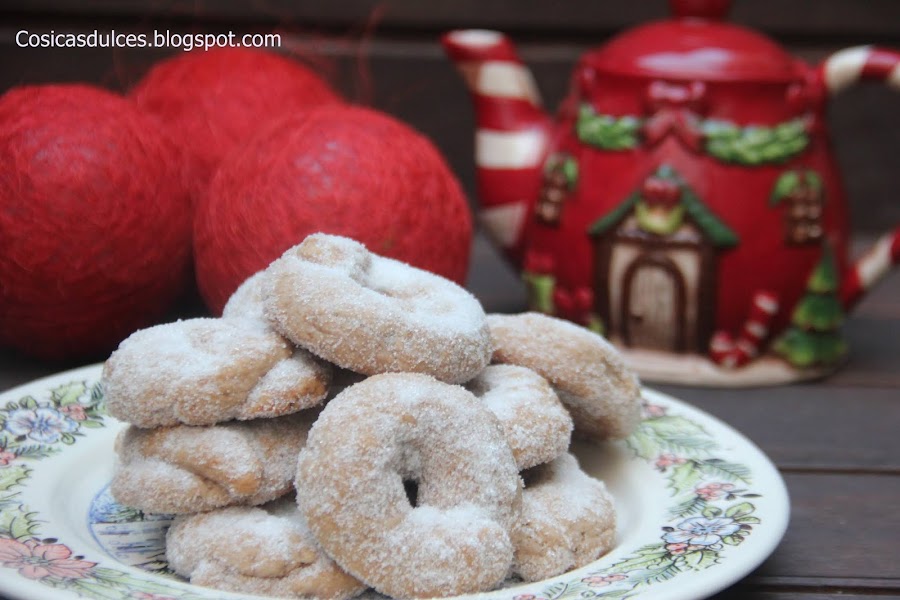 Bon appétit amig@s, Otro de los dulces típicos de Navidad. En mi casa vuelan y es que nos encantan. Son unos bocados muy ricos para el broche final de una comida o simplemente con una bebida caliente. Os aseguro que son mucho mejor que los comerciales y no muy complicados de elaborar. Ingredientes para unas 24 unidades: -150 gramos de harina de trigo común secada -150 gramos de harina de fuerza s ...