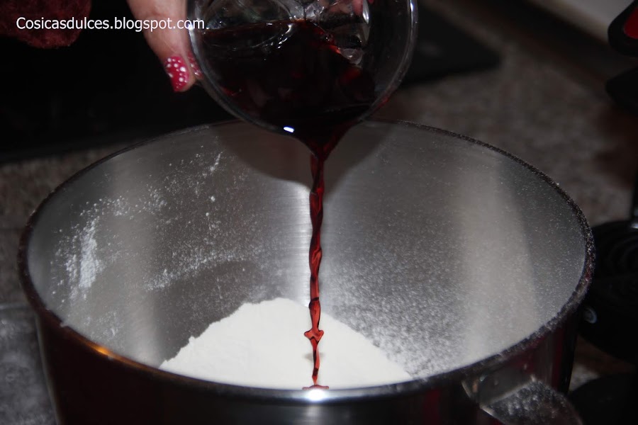 Añadimos el aceite y el vino y mezclamos bien.