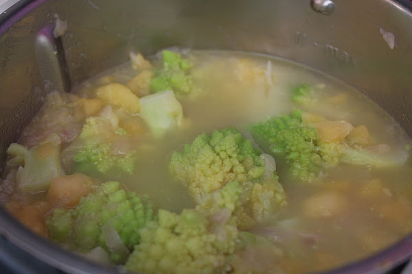 Añadimos las manzanas troceadas y el romanescu en arbolitos.