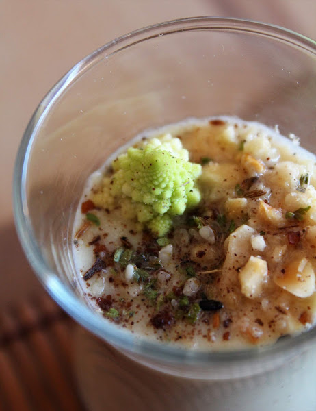 Adornamos con avellanas troceadas, algún pequeño arbolito de Romanescu y pimienta y/o Zaatar.