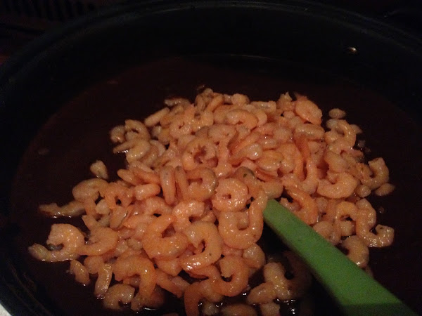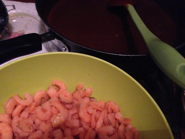 !! Ah pero antes de hacer el mole te recomiendo, como les mencione, podemos usar camarones o tortitas de camarón, en esta ocacion use camarones congelados y para quitarles la sensación de que saben a agua (bueno eso me ha dicho mi hijo), en esta ocacion los prepare, en una olla coloque agua y agregue los camarones con 2 cubos de consome de camarones y unas ramitas de cilantro los deje hervir una ves que hirvieron los saque del caldo y reserva el caldo para usarlo en el mole.