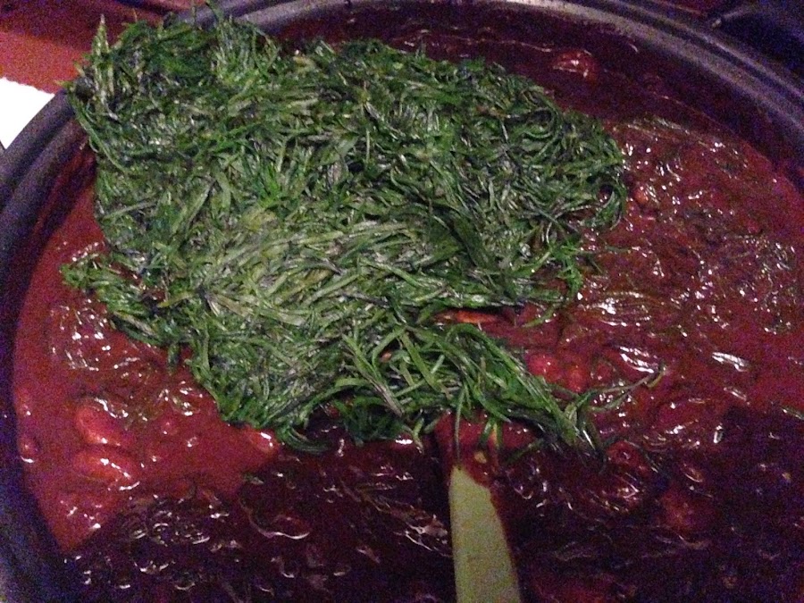 Integramos bien los camarones con el mole y agregamos los Romeritos que ya teníamos escurriendo