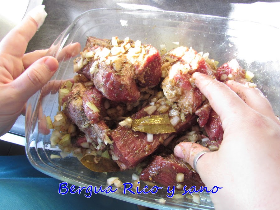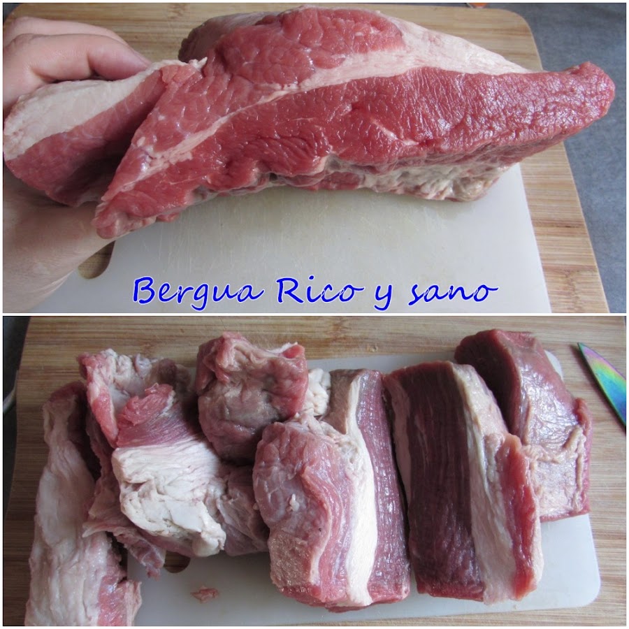 1. Cortamos la pieza de carne en trozos medianos para que nos quepa bien luego en la olla.