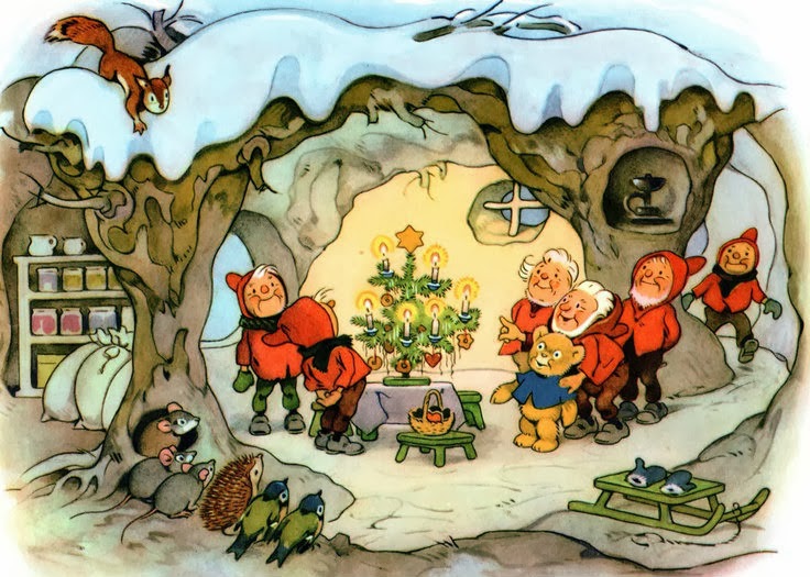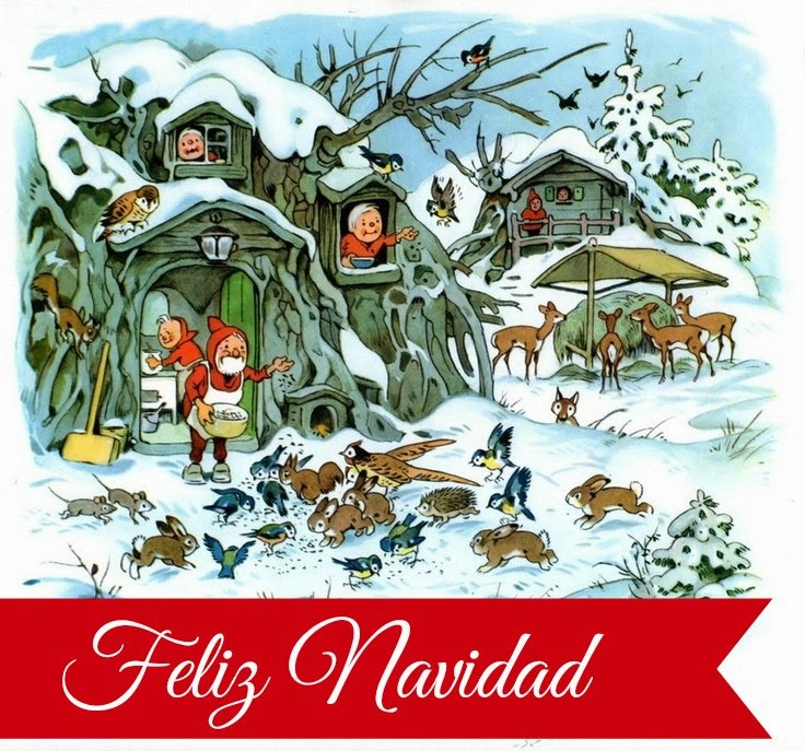 Y para decorar esta Tarjeta Navideña, de nuevo, cuento con las ilustraciones del alemán FRITZ BAUMGARTEN. Hacía tiempo que estas acuarelas andaban empujando, con sus coloreadas manos, la tapa del "arcón de ideas" y, por fin, ha llegado el momento de dejarlas salir.
