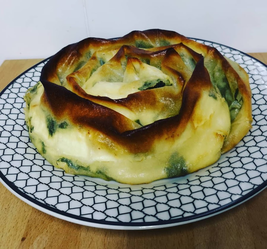 Poner en uno de los bordes las espinacas y el queso ricotta repartido, y luego ir enrollando.