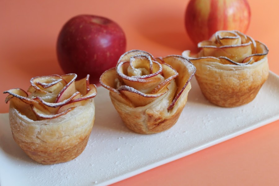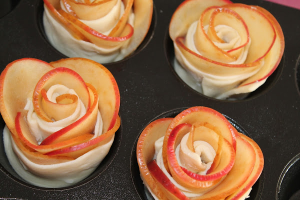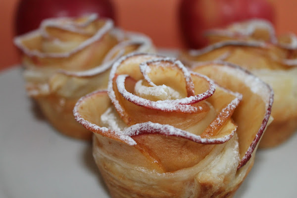 Llevaba tiempo con ganas de preparar las rosas de hojaldre y manzana, las había visto en muchos blogs pero no veía el momento de hacerlas. Es una forma novedosa y muy atractiva de presentar la tradicional tarta de manzana, son prácticamente los mismos ingredientes, sólo le falta la crema pastelera. Una idea de presentación, sería preparar las rosas de hojaldre y acompañarlas con una crema inglesa para servir al gusto de cada uno.