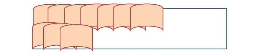 Disponer la manzana en láminas sobre el hojaldre de forma que queden bastante apretaditas. En la banda de hojaldre haremos 2 líneas de manzana llenas. Abajo os he preparado un dibujo muy básico con el ejemplo.