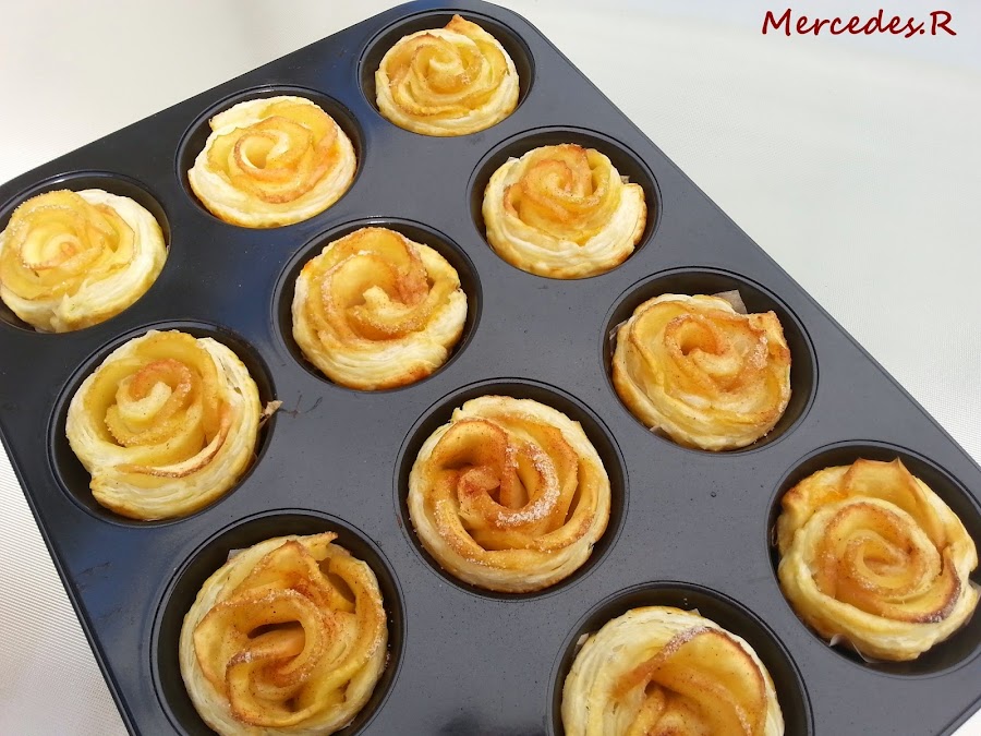 Por otra parte mezclamos un poco de azúcar y canela, espolvoreamos y las metemos en moldes de magdalenas para que no se abran.
