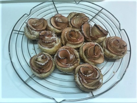 Retirar del horno sobre una rejilla y dejar templar, cuando se puedan manipular sacar del molde para que no se humedezcan y una vez frías espolvorear con azúcar glass y ya se pueden servir. Veréis que solo hay 11 rosas, una se me ha roto, lo tenéis que tener en cuenta por si son para regalar.