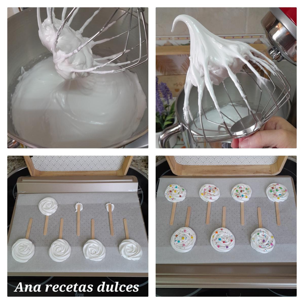 Con esté merengue he preparado unas piruletas de rosas y unos merenguitos o suspiros, son ideales para regalar o para un cumpleaños, a los niños y no tan niños les encantará!
