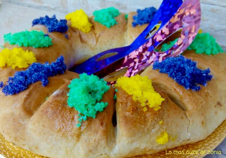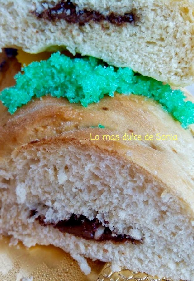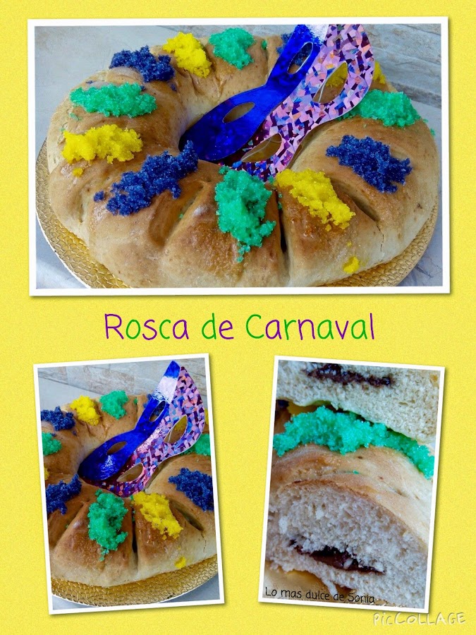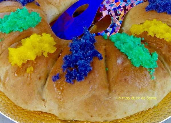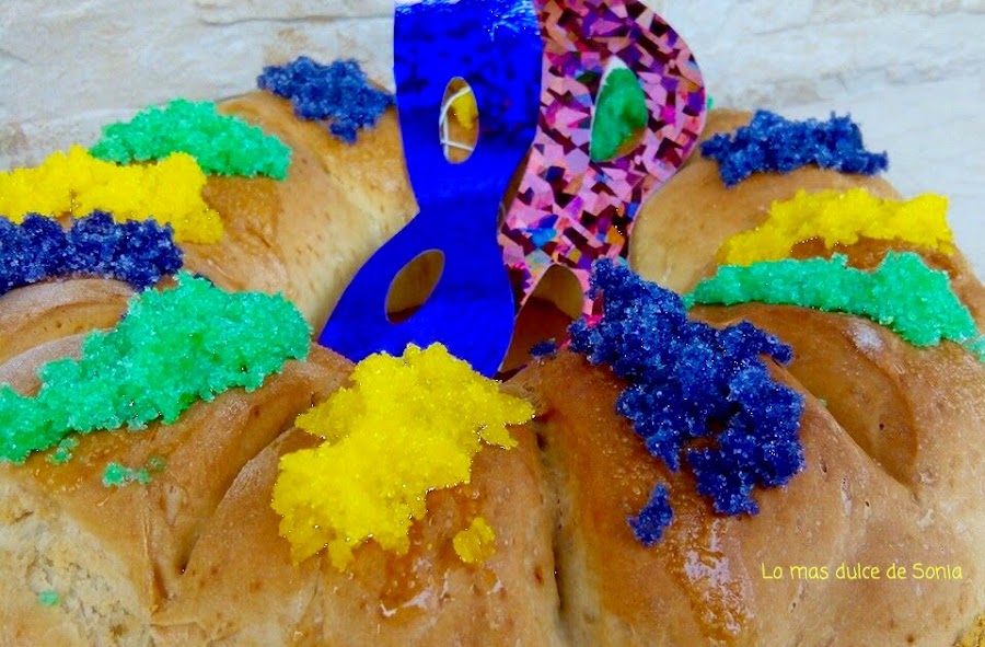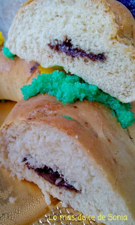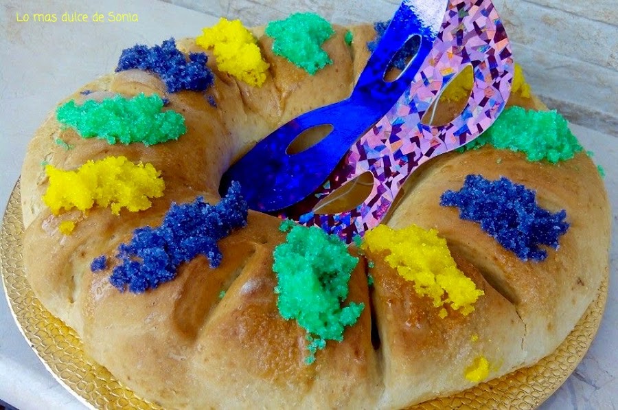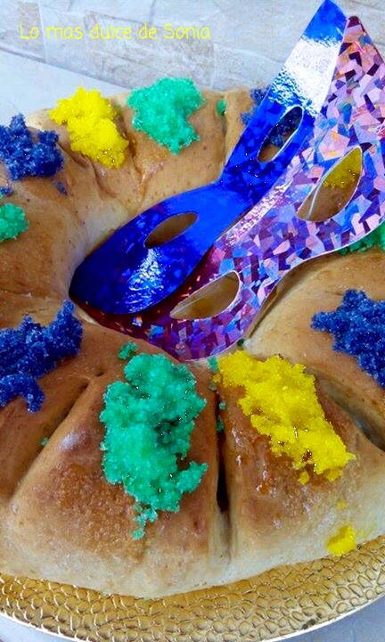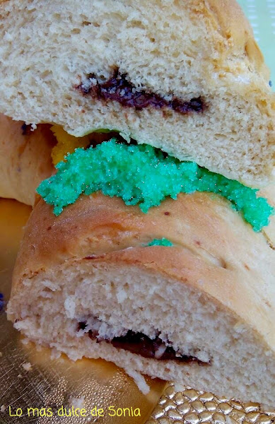 Espolvoreamos la rosca con el azúcar, alternando los colores. Glaseamos. Listo!!