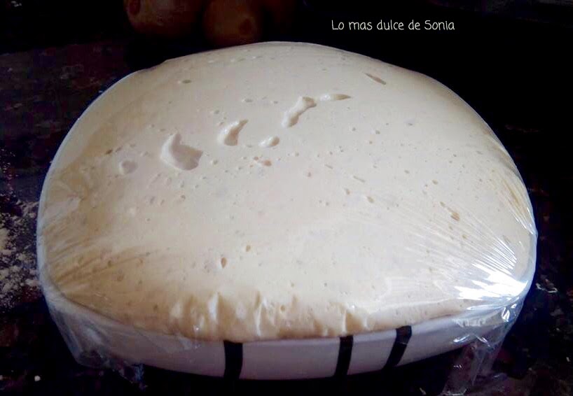 Ponemos la masa en un bol espolvoreado con harina y cubrimos con film transparente. Dejamos reposar unos 40 minutos.